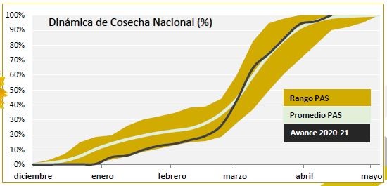 El rinde promedio nacional fue de 21.6 qq /Ha y desciende un 2 8 en comparación al ciclo previo Sin embargo, se mantiene un 2.5 por encima del promedio de las últimas 5 campañas