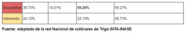 Fuente: adaptado de la red Nacional de cultivares de Trigo INTA-INASE