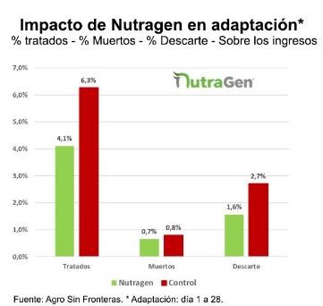 Otra diferencia se encontró al analizar las distancias recorridas desde el campo de origen. “Algunas tropas hacían 100 km y otras, 1.000 km, llevamos registros de todas. Y, en promedio, los tratados, muertos y descarte disminuyeron 40% en los que recibieron Nutragen respecto del grupo control”, desatacó.