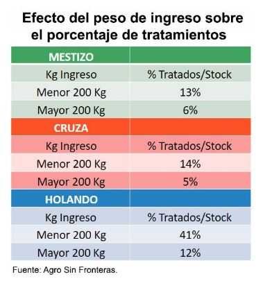 “Los registros de los últimos dos años mostraban que entre los mestizos hubo que tratar el 13% del stock que ingresó con menos de 200 kg y sólo el 6% por encima de ese peso, o sea menos de la mitad, entonces ahí detectamos un grupo de riesgo”, argumentó.