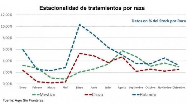 Para la zona central del país, el otoño es complejo y es además cuando los animales ingresan más livianos, por eso se registran más problemas sanitarios, sobre todo neumonías. “Los picos de tratamientos se dan ahora, desde abril a julio, hasta agosto, de modo que armamos un sistema de trabajo especial para el primer semestre del año”, indicó Sueldo, remarcando que la raza y el peso de ingreso fueron determinantes para segmentar las acciones.
