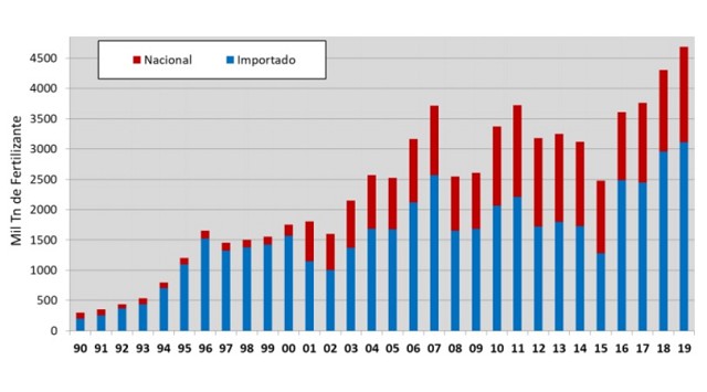 Figura 1: Toneladas de fertilizantes aplicadas en Argentina *fuente “Fertilizar Asociación Civil”, 2020.