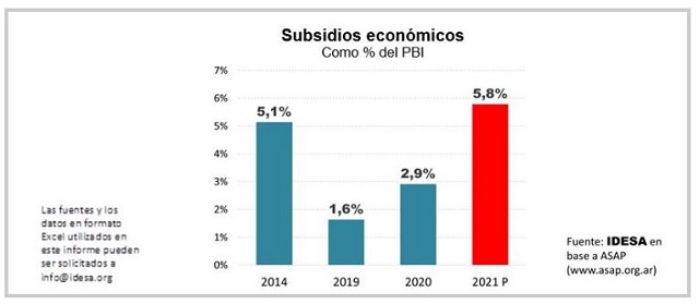Entre los años 2005 y 2014, los subsidios pasaron de 0,8% a 5,1% del PBI.