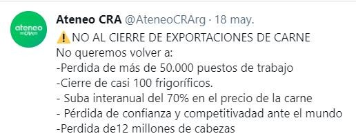 Muy claramente, con datos asertivos lo compartieron los jóvenes de Ateneo CRA , a quienes agradezco se hayan hecho eco de mi #Agrodibu del mes pasado, cuando se anunciaron regulaciones a los volúmenes de exportación de todas las carnes, y que aggioné con mucho amor para ellos ante esta nueva realidad: