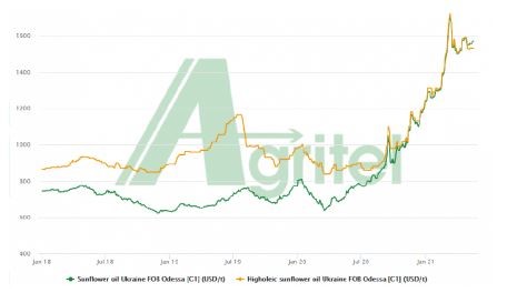 Respecto al aceite de girasol alto oleico (ver gráfico adjunto, fuente: Agritel),