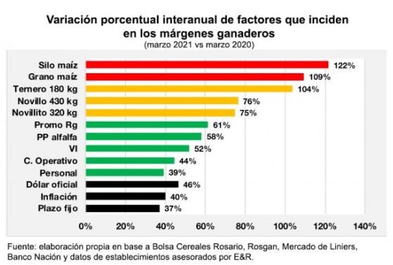 Como se puede observar, la mayoría de los costos directos asociados a sistemas pastoriles tuvieron una suba relativamente baja, mientras que los utilizados por los sistemas más intensivos (grano de maíz y silaje de planta entera), ligados a los precios internacionales, sufrieron los mayores aumentos (109-122%).