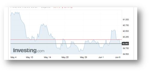 El cuadro que sigue nos muestra el comportamiento del índice dólar, desde principios de mayo a la fecha. Y hoy el dólar volvió a bajar.