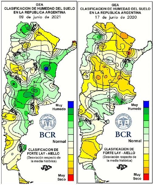 Córdoba aprovecharía la ventaja de disponer más agua en sus perfiles, sobre todo en el este y sur provincial, recuperando el área que no pudo cultivar el año pasado, con un 14% más de área triguera. Pero no será sencillo, la falta de agua ya paralizan las siembras en el centro y norte. Buenos Aires caería casi un 10% por la cebada, aunque se destaca la recuperación de humedad edáfica en