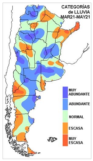 Para describir el trimestre de otoño (marzo-mayo), utilizamos la comparación de los registros con los valores estadísticos (1973-2020), para establecer anomalías que permitan detectar en forma rápida y a gran escala, excesos y deficiencias pluviales.