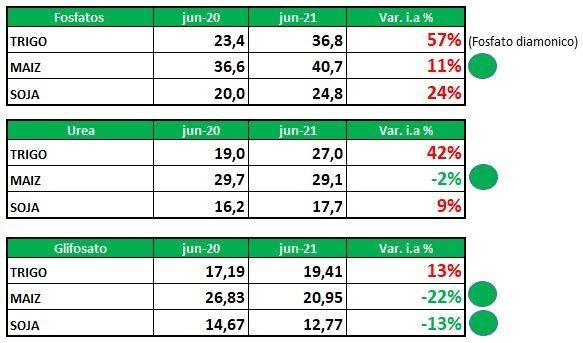 De acuerdo a informe de la Bolsa de Cereales de Córdoba (1) estos fueron los aumentos en dólares promedio, de los principales insumos en cuestión: