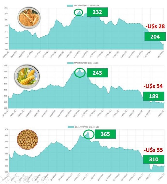 Si no cerraste el precio de grano, al 25/06/2021, la cotización futuro maíz 04/2022, es de U$s 176,5. Significa que a un ROFEX estimado de $ 131,10 deberás vender 101 toneladas para honrar dichos cheques, 19 tn. más que las originales, a si hubieras calzado “CARA” y “SECA” de tu moneda.