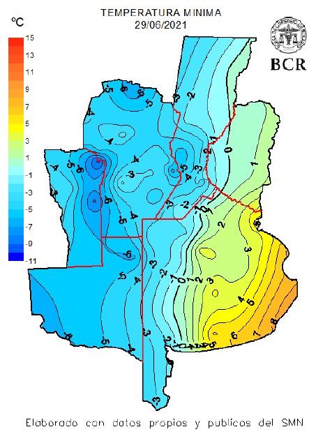 Un viento helado y cortante viene acorralando a la región núcleo desde la última semana. El penúltimo día de junio amaneció con neviscas que formaron hasta mantos de nieve en el S de Santa Fe como en Villa Cañas o Lincoln y General Pinto en el NO bonaerense. El ingreso de aire polar que viene dándose desde el fin de semana provocó un feroz descenso de las marcas térmicas en toda la región núcleo, llegando a sus registros más bajos entre las horas de la madrugada del lunes 28 al martes 29 de junio. Se trata del evento más frio en lo que va del año. Casi todos los termómetros de las estaciones meteorológicas de la red GEA quedaron sumergidos bajo el cero con registros muy bajos hacia el oeste y centro sur de Santa Fe. El oeste cordobés registró entre 3 y 5 grados bajo cero: Canals con -4,7°C o Guatimozín con -3,9°C.