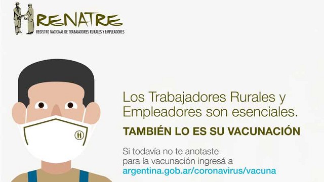 “Los trabajadores rurales se encuentran trabajando en todo el territorio nacional, ya sea manejando maquinaria agrícola, cosechando, empacando o realizando diversas actividades fundamentales para la producción de alimentos. Ellos no han parado de trabajar ni un solo día, por lo que consideramos que se deben generar acciones especiales para convocarlos y operativos para alcanzar a estos trabajadores que muchas veces cuentan con limitaciones tecnológicas para inscribirse en los planes de vacunación de cada provincia, y se encuentran a grandes distancias de centros urbanos y centros de salud”, aseveró el Presidente del RENATRE, José Voytenco.