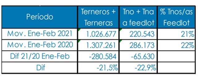 tendencia según la información del SENASA, de un menor movimiento de terneros de
