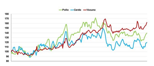 abastecida de proteína animal, así como de carne vacuna a los menores valores