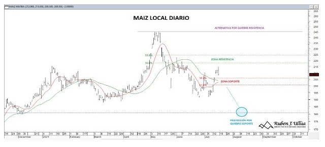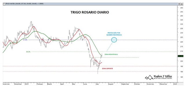 Solamente en caso que veamos subidas del cereal por encima de 225 dólares, estaremos rehabilitando confianza alcista mayor en el precio, incluso con posibilidades de retorno hacia instancias de máximos previos en los 240-245 dólares.