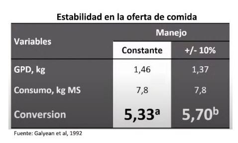 “Al final, ambas tropas habían comido lo mismo, 7,8 kg de MS/día/cab, pero los que recibieron una alimentación constante, mejoraron la conversión un 7% (5,33 versus 5,70)”, puntualizó.