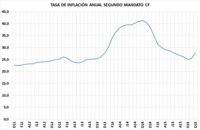 Es más, tomando la inflación Congreso para el período en que Moreno intervino el INDEC, Cristina Kirchner no pudo perforar el piso de inflación del 25% anual, con picos que sobrepasaron el 40% por ciento anual aún con tarifas de los servicios públicos atrasadas y con el tipo de cambio pisado. Recordemos que ni bien asumió su segundo mandato se estableció el cepo cambiario que se mantuvo hasta que asumió Macri.