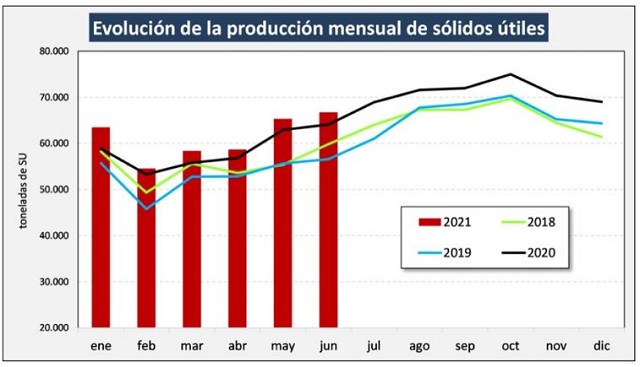 En el mes de junio del 2021 la producción fue de 920,7 millones de litros de