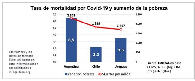 En Argentina la tasa de mortalidad por Covid-19 es de 2.300 por millón de habitantes y la pobreza aumentó en el 2020 un 6,5% de la población.