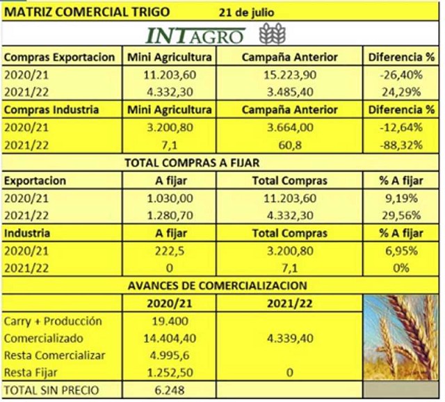 La molinería, no ha participado al momento de la comercialización de trigo nuevo, cuando el año pasado a igual momento tímidamente algo había comprado.