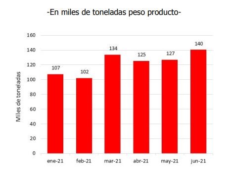 En junio las exportaciones totales de carne bovina de Brasil se ubicaron en 140 mil toneladas (peso producto), creciendo 11% respecto de mayo, mientras que los envíos uruguayos llegaron a las 34 mil toneladas, creciendo un 2% intermensual. El buen desempeño de los vecinos valida lo antes comentado, la oportunidad que pierde Argentina de seguir expandiendo sus ventas externas.