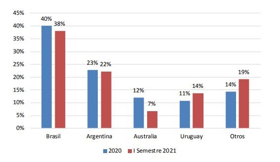 Gráfico 3: Proveedores de carne bovina a China, participación de mercado