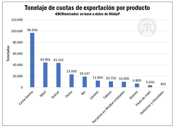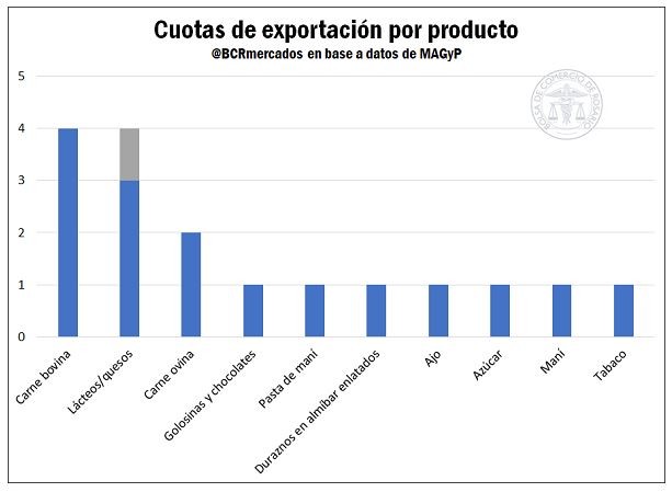 La relevancia de estas cuotas radica en que brindan un esquema de incentivos para la producción en las diferentes cadenas agroalimentarias del país, permitiendo un desarrollo más heterogéneo, incluso estimulando el agregado de valor debido a la elevada participación de las MOA dentro de estos acuerdos. De todas formas, los tonelajes de agregados que resultan de sumar las diferentes cuotas por producto revelan la importancia que se le ha dado a los productos cárnicos, y en especial a los bovinos, en los acuerdos comerciales en nuestro país.