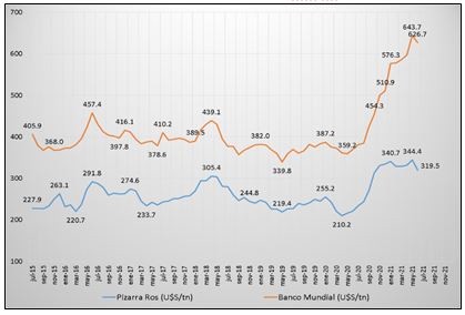 Fuente: CES-BCSF en base a precios de pizarra del Mercado de Rosario y Banco Mundial.