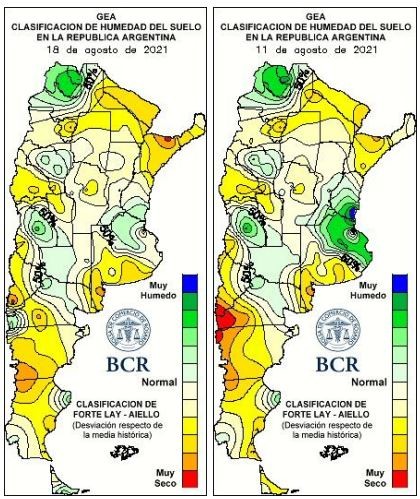 ¿Cuál es el grado de sequía que hay en Brasil en este momento? Aiello contesta: “El nivel de sequía es extraordinario, es uno de los más importantes que hayamos conocido. Está impactando como nunca se había visto en la provisión de agua para la población y en los niveles energéticos. Las represas están trabajando con niveles muy inferiores a los normales y esto se refleja en los problemas con el río Paraná. Esta sequía tiene muy pocas chances de revertirse por lo menos hasta noviembre. La administración de alarma medio ambiental brasileña no ve respuestas favorables en los modelos climáticos. La situación es muy incierta”. Y esto es una mala señal para esperar algún flujo de humedad que auxilie a Argentina desde el sur de Brasil desde La Amazonia. Por otro lado, agosto sigue sin dar señales de recuperación pluvial en Argentina y las buenas reservas obtenidas durante el otoño son insuficientes en toda la franja oeste del país.