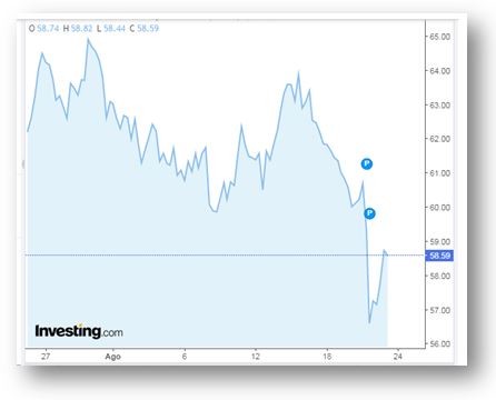 Abajo, podemos apreciar el recorrido del precio del aceite en los últimos días.