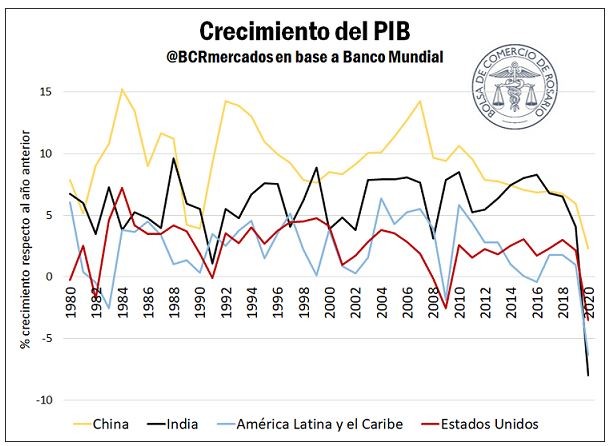Una aceleración del crecimiento económico explotaría con creces las potencialidades de la economía india. El PIB per cápita del 2020 fue de apenas US$ 6.454. Para dar una dimensión comparativa, el PIB per cápita de nuestro país fue de US$ 20.767, más de tres veces el indio (de acuerdo con el Banco Mundial, medido en PPA). Por su parte, el PIB per cápita de China se encuentra en torno a los US$ 17.311.