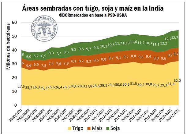 ¿Cuánto cosecha la India de trigo, maíz y soja?