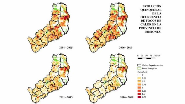 "El fuego es un factor que transforma el paisaje y es una forma de remover la cobertura, cuando es intencional. Pero, a diferencia de otras prácticas como el desmonte con topadora, el fuego siempre encubre cuál fue el factor generador". Dentro del período analizado, Niborski observó con especial interés lo que ocurrió en Misiones después de 2010, el año en que se implementó la Ley Nacional 26.331: "Encontré que en los departamentos con mayor superficie de bosque nativo persistían los focos de calor luego de la implementación de la Ley. A su vez, estos departamentos también tienen la mayor superficie de área protegida en el formato de reservas o parques, por lo que en ellos coexisten grandes superficies sin focos de calor y otras con alta densidad y recurrencia de focos de calor".