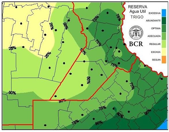 En la zona cordobesa, sigue habiendo necesidad de nuevas lluvias. Las reservas de agua del suelo para el trigo se consideran entre escasas a regulares. De todas formas, bajó el estrés que se estaba observando. Ahora hay una pequeña tregua, pero tienen que llegar lluvias acá en más para pasar adecuadamente el periodo más crítico del cultivo.