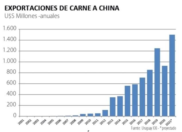 El consumo interno del Uruguay fue la mitad de esa cifra; es cierto que el consumo local está -obviamente- afectado por la pandemia y la caída en el ingreso (salarios y empleo), pero el principal factor para el giro profundo de la situación es China.