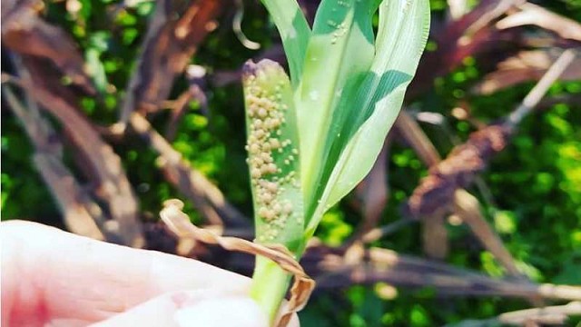 El pulgón amarillo del sorgo (Melanaphis sacchari) es considerado una de las plagas más dañinas para el cultivo, debido a que se alimenta de la savia, reduce la absorción de nutrientes que podrían ser utilizados por la planta para crecer, desarrollarse y formar granos.