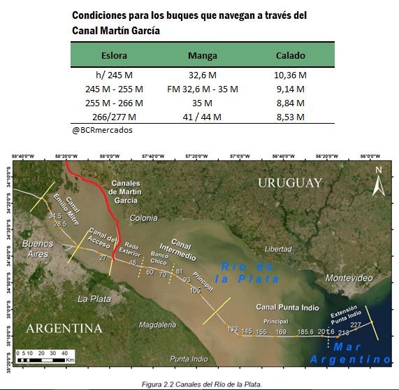 Esta menor altura en el tramo Timbúes-Océano afecta el calado con el que