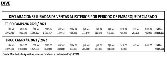 Atención con las DJVE de trigo campaña 21/22 en 9.065 Mtn.