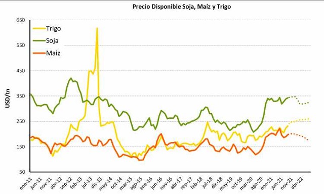 En este sentido, si bien no hay indicios de que los valores alcancen los niveles registrados en el primer semestre del año, las perspectivas de los precios de los granos gruesos para la campaña 2021/2022 indican que se ubicarían por encima del promedio. Sin embargo, hay que tener presente que, de no cumplirse las proyecciones productivas para Sudamérica podrían generarse subas adicionales.