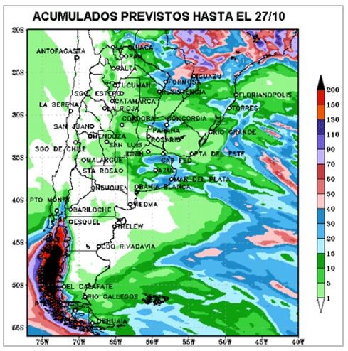 Si vemos el mapa de lluvias acumuladas proyectado hasta mediados de la semana próxima, rápidamente comprobamos que la oferta de agua es realmente pobre y si se dan algunas lluvias más generosas, no serán precisamente las provincias del centro las que cuenten con mejores chances de ser receptoras de estos nuevos aportes pluviales.