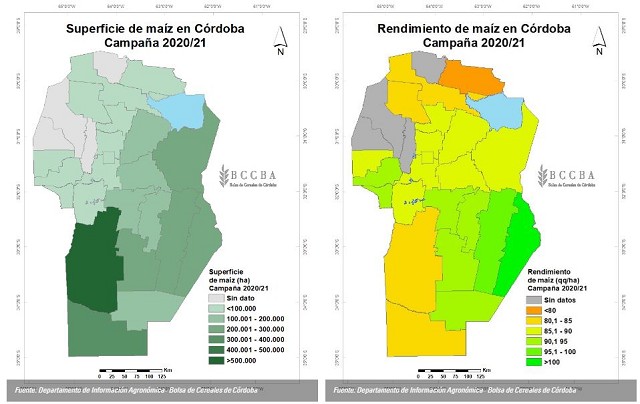 La participación del volumen de maíz en la producción nacional aumentó de un 33 % a un 39 % en un año, principalmente debido a que la superficie de la provincia mostró un importante incremento, mientras que a nivel país se mantuvo relativamente constante. Los rendimientos fueron mayores en un 20 % a la media nacional, principalmente debido a que la mayor proporción de maíz tardío permitió coincidir el periodo crítico con las mejores condiciones climáticas.