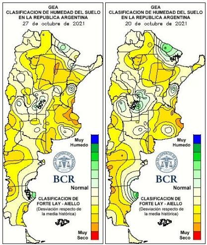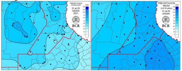 “Lotes que hace 10 años no se podían sembrar por estar siempre con excesos, en éste año volvieron a producción por la falta de agua. El paisaje se ve muy diferente: las lagunas históricas de la zona han desaparecido”, dicen los ingenieros de Teodelina, sur de Santa Fe. Y agregan: “en lo que va del 2021 recibimos solo 500 mm, cuando tendríamos que estar cerca de los 750 mm”. Octubre será otro mes por debajo de la media en la región. El NE bonaerense solo recibió la tercera parte de lo que indican las estadísticas de los últimos 30 años.