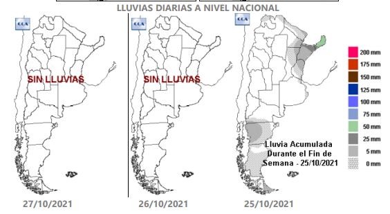 “El forzante “Niña” ya está instalado y lentamente está aumentando su intensidad y su efecto negativo sobre la oferta de agua. Esto ya se refleja en la dinámica de las precipitaciones: solo se producen por la interacción entre el aire cálido y húmedo proveniente del noreste y el ingreso de frentes fríos desde el sur argentino”, explica Aiello. “A este escenario complejo debemos sumarle dos fenómenos que están aumentando la rigurosidad climática”, agrega el consultor Elorriaga. “Por un lado, el actual enfriamiento de la temperatura superficial del Atlántico disminuyó el ingreso adicional de aire húmedo a la franja este del país. Lo otro es la instalación de un pulso cálido producto de la circulación norte y la alta radiación solar. Desde el martes 26 tenemos temperaturas casi de enero. El pulso podría extenderse hasta el fin de semana”. Aiello afirma que el escenario es muy complejo para el centro y el norte del país y que podría condicionar en algunas zonas el avance de la siembra temprana de soja. Hay algo que podría jugar a favor de los cultivos, la transición a noviembre muestra condiciones muy parecidas a las que se dieron antes de las importantes lluvias de inicios de setiembre. Los modelos de pronóstico no indican que los fenómenos serían tan importantes, pero muestran aportes de agua que podrían proporcionar alivio sobre todo al centro del país.