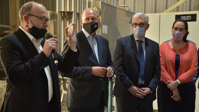 En su recorrida por la planta industrial, Julián Domínguez dialogó con investigadores y trabajadores y luego con directivos de la firma Keclon. Entre ellos, Agustín Otero Monsegur (presidente), Leonardo Marraffini (Director Ejecutivo) y también con Hugo Menzella, uno de los co-fundadores de la compañía y que además es un investigador rosarino del CONICET.