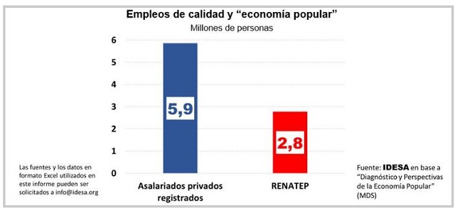 - Esto significa que por cada 2 asalariados formales privados hay 1 inscripto en el Registro de la “economía popular”.