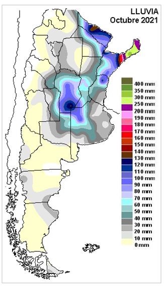 Como hemos aclarado en otras ocasiones, el trimestre octubre diciembre es por lo general, el que presenta mayor afectación negativa en la oferta de agua. Octubre ha mostrado vastas zonas influenciadas por este fenómeno, sin embargo, encontramos contraejemplos zonales como Paraguay, Formosa y Misiones, donde las lluvias incluso se han presentado por encima de los valores normales.