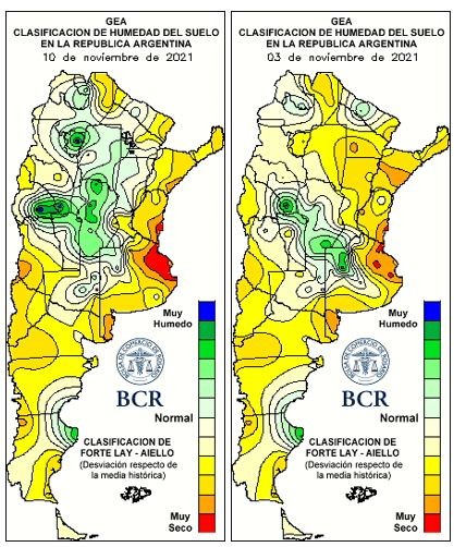Se lleva sembrada el 80% de soja de primera en la región. Pero comienza a achicarse la ventana ideal de siembra. En Cañada de Gómez finaliza el 20 de noviembre. Si bien quedan pocos lotes por sembrar, 550.000 ha, las lluvias pronosticadas para el fin de semana podrían condicionar el avance. Por un lado, las precipitaciones permitirían la recarga de reservas para el arranque del cultivo, pero, por otro, el volumen de las precipitaciones condicionaría la reanudación de la siembra dejando una gran cantidad de hectáreas al borde de quedar por fuera de la ventana optima de siembra.