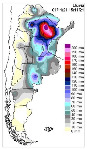 Salvando el temporario descenso térmico que se observó hoy, con algunas heladas débiles en el sur bonaerense, las temperaturas se perfilan en ascenso por varias jornadas, alcanzando valores veraniegos par el fin de semana. Por lo que anticipan los modelos, las lluvias no regresarían al menos hasta el martes o miércoles de la semana próxima. Las lluvias previstas no se apartan de lo que viene sucediendo como patrón pluvial de la primavera, o sea no se están esperando precipitaciones abundantes. Debemos considerar entonces que será en la última parte de noviembre o en la transición hacia diciembre en que posiblemente reaparezca un sistema de mal tiempo con buena producción de lluvias. Este potencial regreso más generoso de las precipitaciones será muy esperado por los maíces que fueron sembrados en forma más temprana y que entran en floración en la primera quincena de diciembre.