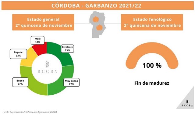 En general, más del 70 % de la legumbre presentaba una condición entre excelente y buena, seguido de un 23 % entre regular y malo, atribuible principalmente a la falta de precipitaciones durante todo el ciclo del cultivo invernal en la zona garbancera.